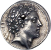 Seleucid Kingdom. Antiochos VI, 145-142 BC. AR Drachm (4.2 g), c. 142 BC. Young radiate head right. Reverse: Macedonian helmet, with ibex horn. SNG Cop. 300 var. Devices a bit off center; still, pleasing and rare. Also, Antiochos III, AE 26 mm.: Head right / Elephant right (SGC 6944 var.) -- some smoothing and tooling. And Sidon, c. 101/100 BC., AR Tetradrachm: Veiled Tyche right / Eagle on prow left (SGC 5950 var.). Slight smoothing to obverse; toned. Lastly, Cilicia, Soloi, c. 385-350 BC., AR Stater: Athena head / Grapes (SNG Aul. 5867 var.). Some rough and pitted surfaces. Lot of 4 coins. Coins range from Fine to About Extremely Fine. Estimated Value $350 - 450