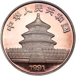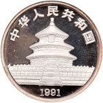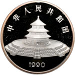 China. 50 Yuan, 1990. KM-273. 4.9944 ounces. Two pandas, one in tree. Gem Proof.