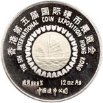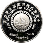 China. 12 Ounces, 1986. KM-X#MB6. Silver. 12.052 ounces. Mintage 1,000. Panda. For the 5th Hong Kong International Coin Exposition. With presentation wood case and certificate. Choice Brilliant Proof.
