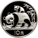 China. 10 Yuan, 1985. KM-114. Panda with cub on back. Gem Brilliant Proof.