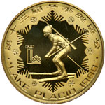 China. Piedfort Yuan, 1980. KM-P10 (KM-20) (PCGS incorrect label). Brass. Lake Placid-13th Winter Olympic Games - Biathlon. PCGS graded Proof 68 Deep Cameo.