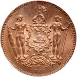 British North Borneo. Cent, 1891-H. KM-2. Wildmen. Very attractive example. PCGS graded MS-64 Red.