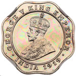 British India. 4 Annas, 1919 (C). Prid-874; KM-519. Copper-Nickel. Scalloped octagon. George V. Restrike. NGC graded Proof 65.