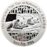 China. Official Mint 5 Ounce and 1 Ounce Medals, 2014. Smithsonian Institution. Pandas at the National Zoo. Both pieces in custom wood presentation cases. Lot of 2 Medals. NGC graded Both Medals Proof 70 Ultra Cameo.