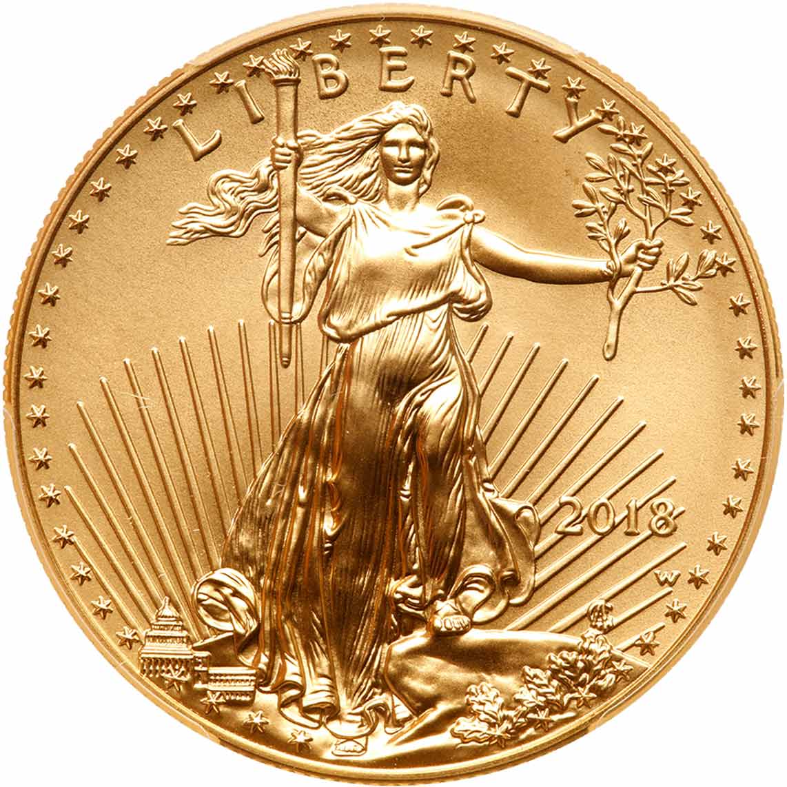 2018-W $50 Burnished American Gold Eagle. PCGS graded Specimen 70. A perfect coin. Only 7,913 struck. Estimated Value $1,700 - 1,800