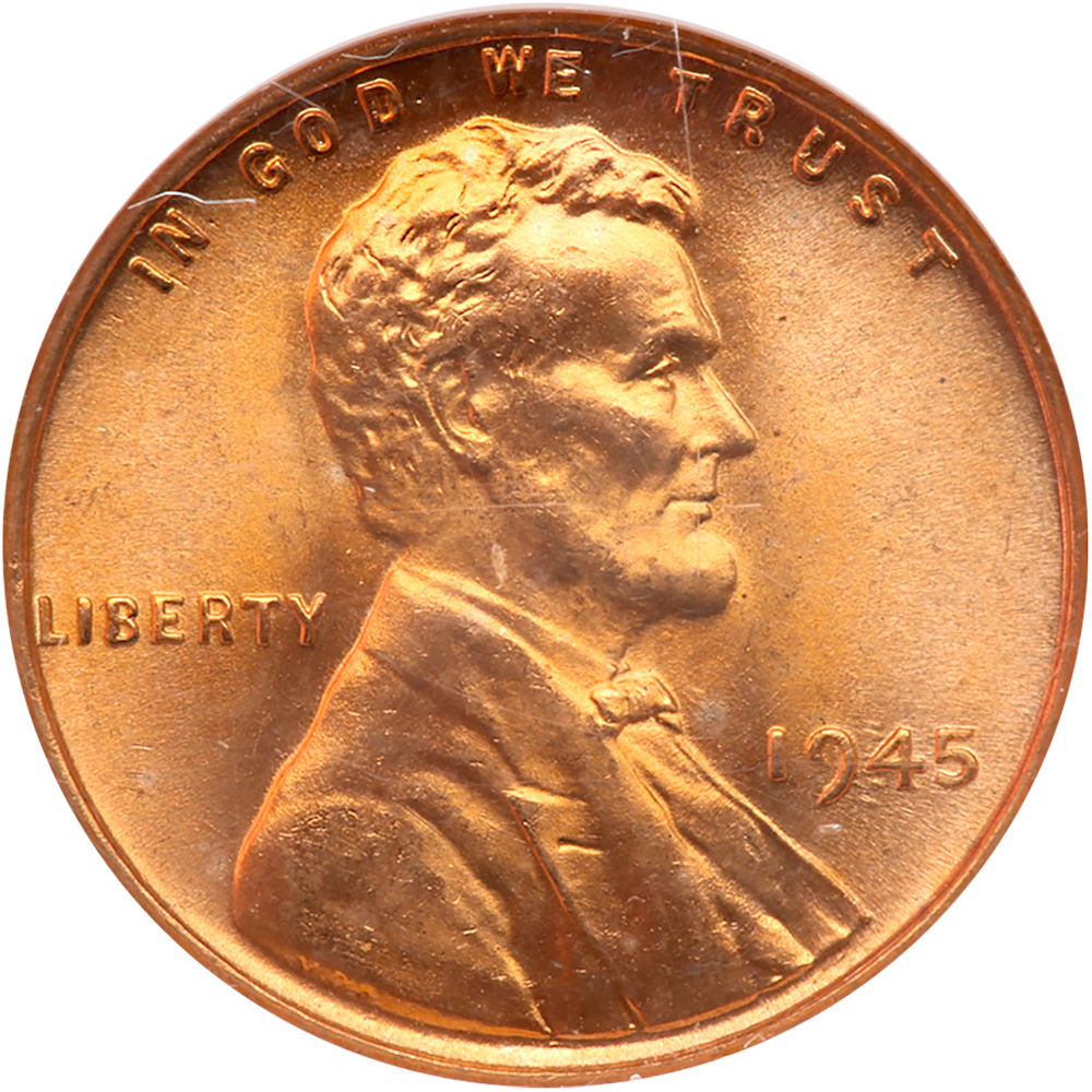1945. NGC graded MS-67 Red. Fully red. Pop 232; 1 finer in 68.