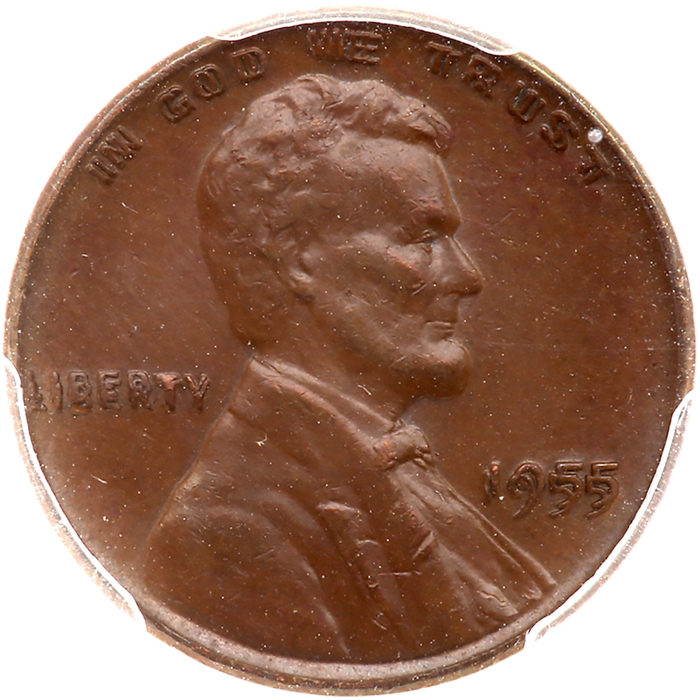 1955. Doubled Die Obverse. PCGS graded AU-58 Brown. Nice rich brown toning and wonderfully original with clean surfaces and the incredible doubling on the obverse. This is one of the most sought after Lincoln cemts ever produced, with the dramatic doubling of the obverse die so prominent that all collectors desire to own one! Here is your chance (PCGS # 2825) .