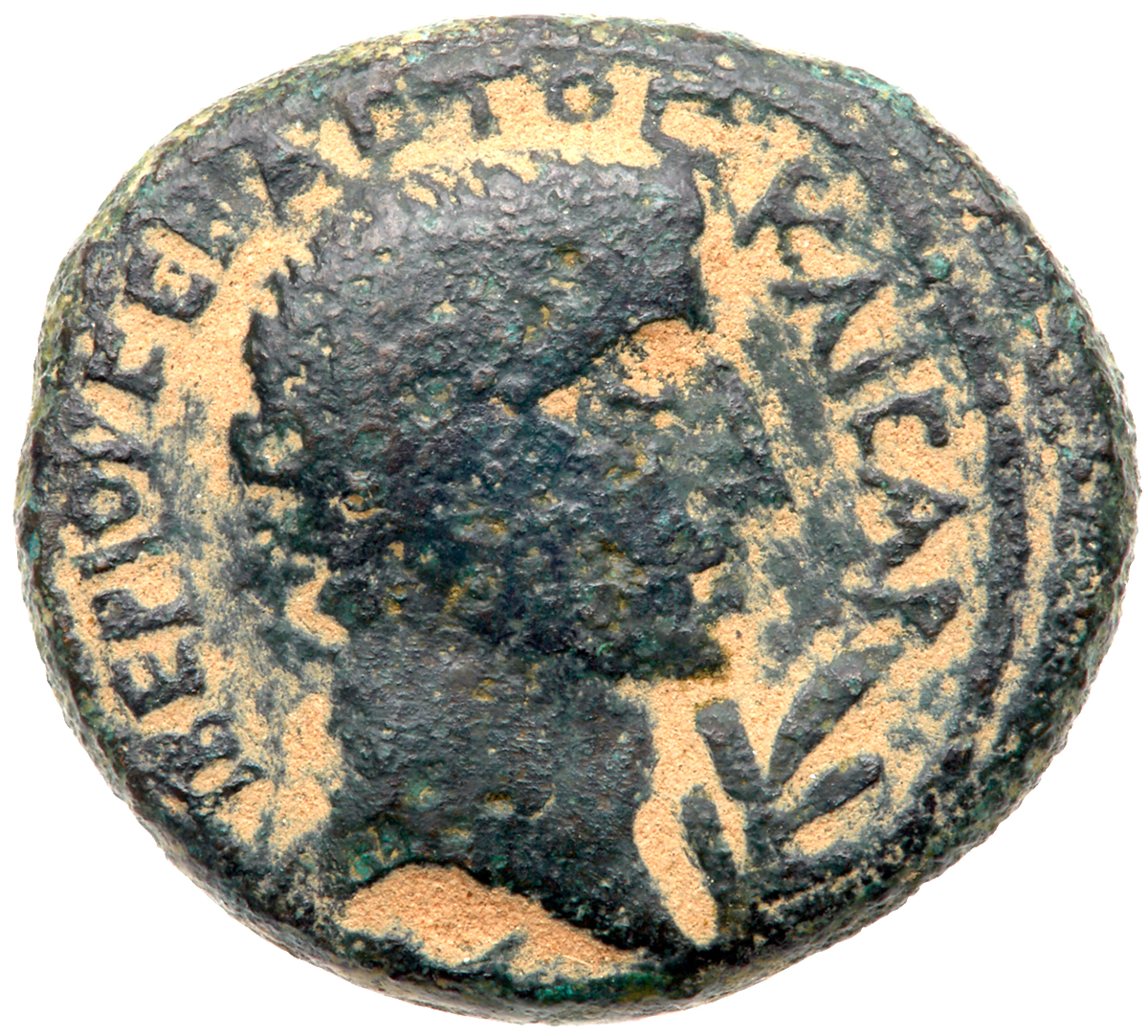 Judaea, Herodian Kingdom. Herod IV Philip. Æ (5.72 g), 4 BCE-34 CE. Caesarea Paneas (as Caesarea Philippi), RY 34 of Herod IV Philip (30/1 CE). Laureate head of Tiberius right. Reverse: Tetrastyle temple (Augusteum of Panias); between columns, date (L Λ-Δ). Hendin 1230; TJC 106; RPC 4948. Rare. Pleasing earthern patina. Choice Very Fine. Estimate Value $700 - 800