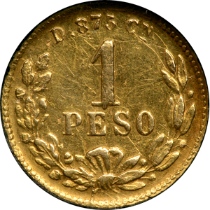 Mexico. Peso, 1881-Cn D. Fr-160; KM-410.2. Mintage 338 pieces. ICG graded AU-55.