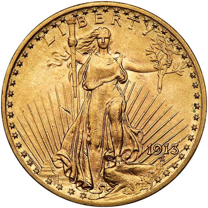 1913. PCGS graded AU-58. CAC. Premium Quality. Lightly toned and sure looks Mint State (PCGS # 9161) Estimated Value $1,600 - 1,650