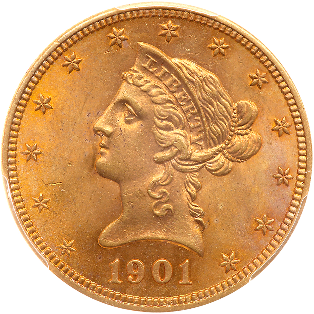 1901. PCGS graded MS-64. Lovely rich golden-orange toning with satin smooth surfaces. An excellent representative of this issue for its clean fields and devices, as well as handsome presentation (PCGS # 8747) .