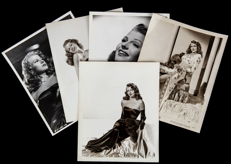 Rita Hayworth: Ten (10) Vintage Original 8 x 10" Publicity Stills From GILDA. GILDA (1946) skyrocketed Rita Hayworth into film history with her remarkable and alluring performance, beauty and of course her number, "Put the Blame on Mame" Offered are 10 stills photographed either by Coburn or Cronenweth, with seven having publicity snipes attached on verso. Wonderful portraits of Hayworth and portraits with co-star Glenn Ford and George Macready. Fantastic collection of stills from one of the most highly collected film noirs from the 1940s. Estimate Value $800 - UP