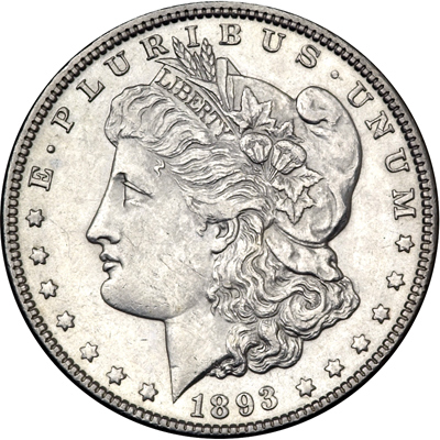 1893. AU-50. Plenty of luster remains. Estimated Value $150 - 175