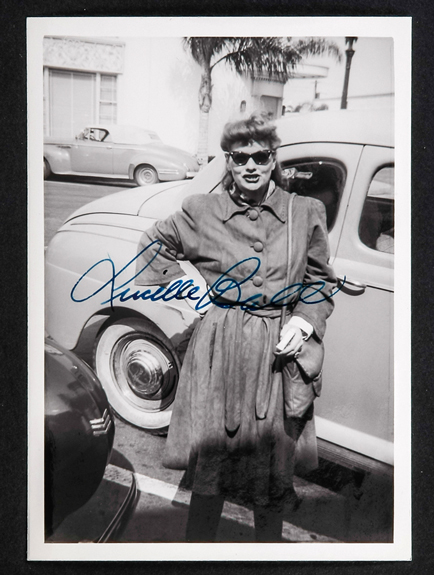 Ball, Lucille. Signed Photo. Original vintage black and white candid photograph hand-signed by the comedienne circa 1940s in Beverly Hills, CA. 5x3.5 inches. Fine condition. Estimated Value $150 - 300