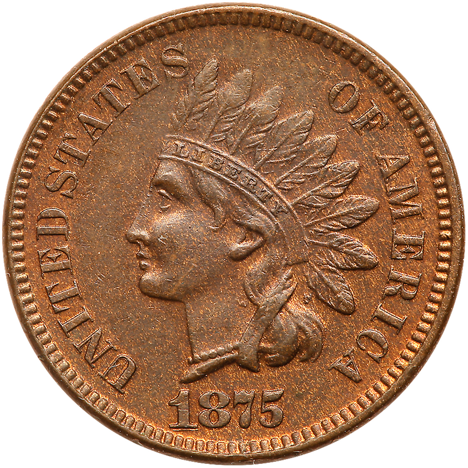 1875. Snow-3. MS-61 Red & Brown. Repunched 1. About 25% red. Estimated Value $180 - 200