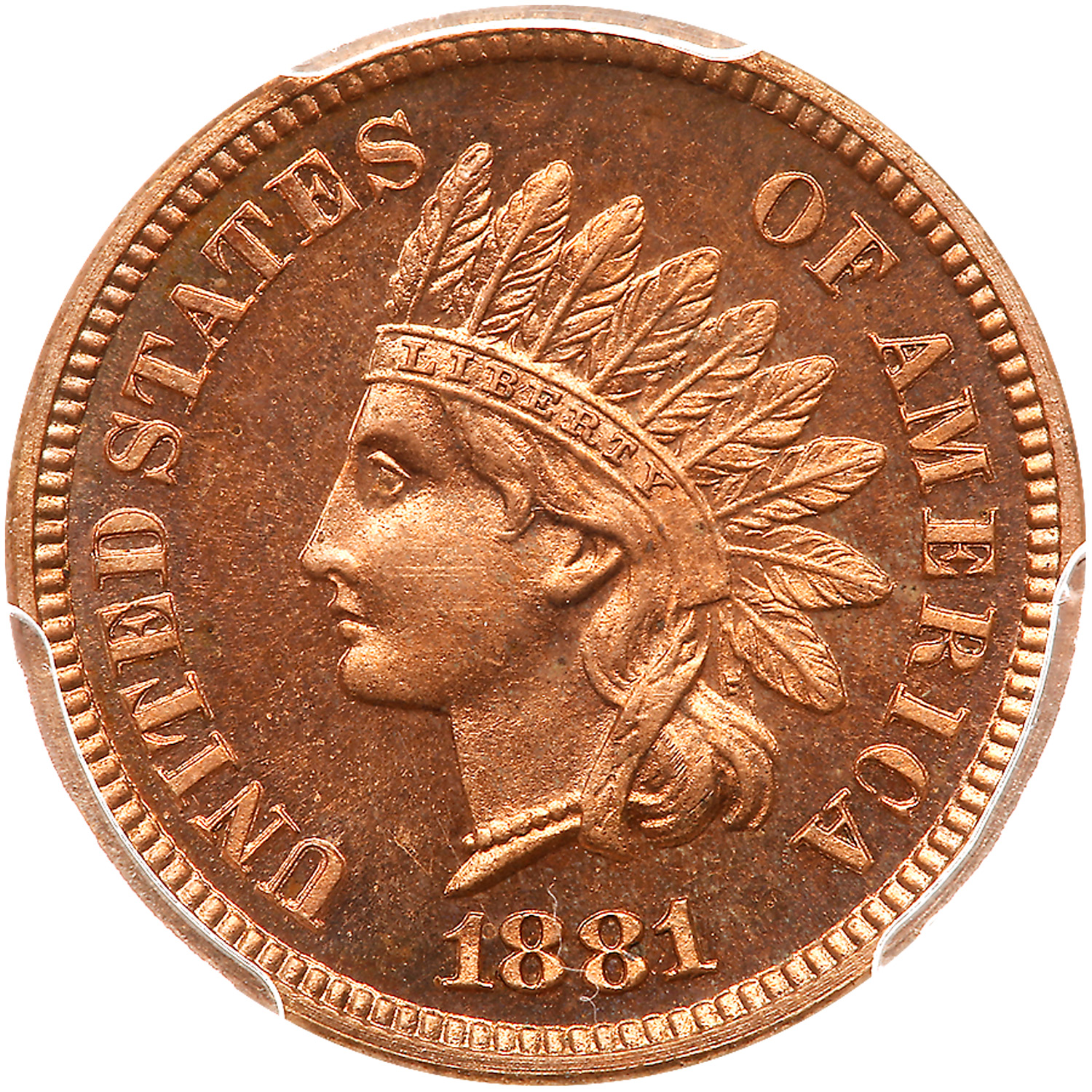 1881. PCGS graded Proof 64 Red & Brown. Eagle Eye Photo Seal. Good mirrors. Nearly full red. Only 3,575 struck (PCGS # 2331) Estimated Value $280 - 300