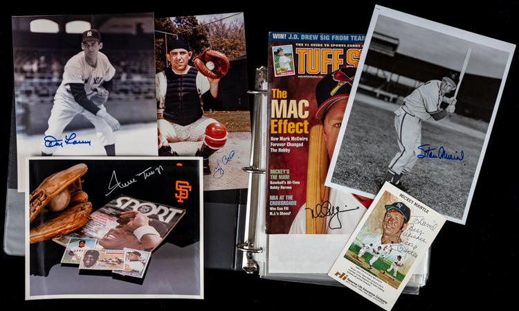 Signed B&W photos: Stan Musial, Billy Herman, Ralph Kiner, Buck Leonard, Eddie Joost, Fred Lynn, Jim Fregosi, Bill Russell, Roger McDowell Jim Lefebvure, Mariano Duncan, Wes Parker, Bill Madlock, Hank Borowy, Don Newcomb, Pedro Guerrerro and Brian Downing.
