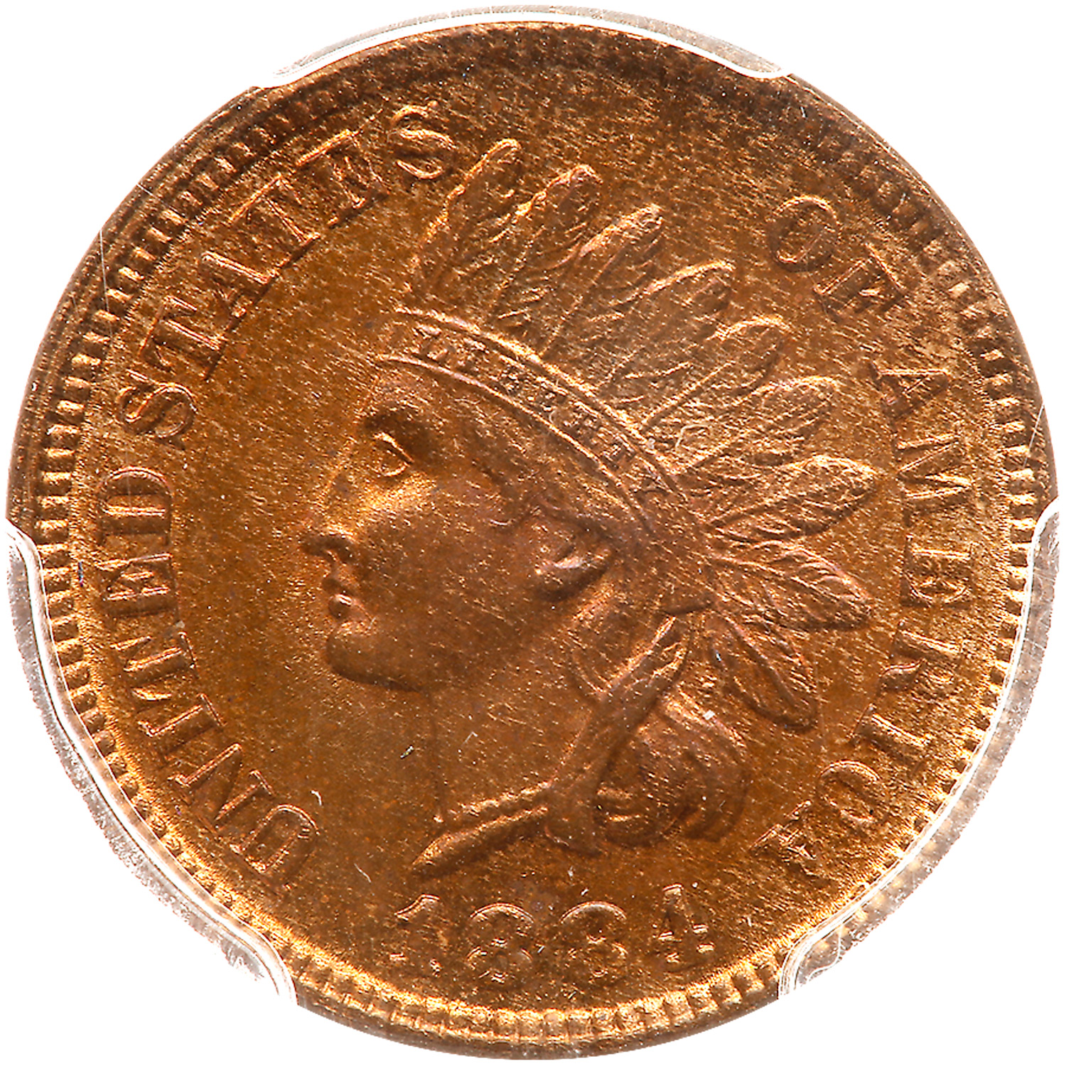 1884. Snow-8. PCGS graded MS-64 Red & Brown. CAC. Eagle Eye Photo Seal. Misplaced digit in the denticles. About 75% red. Full strike (PCGS # 2149) Estimated Value $180 - 200