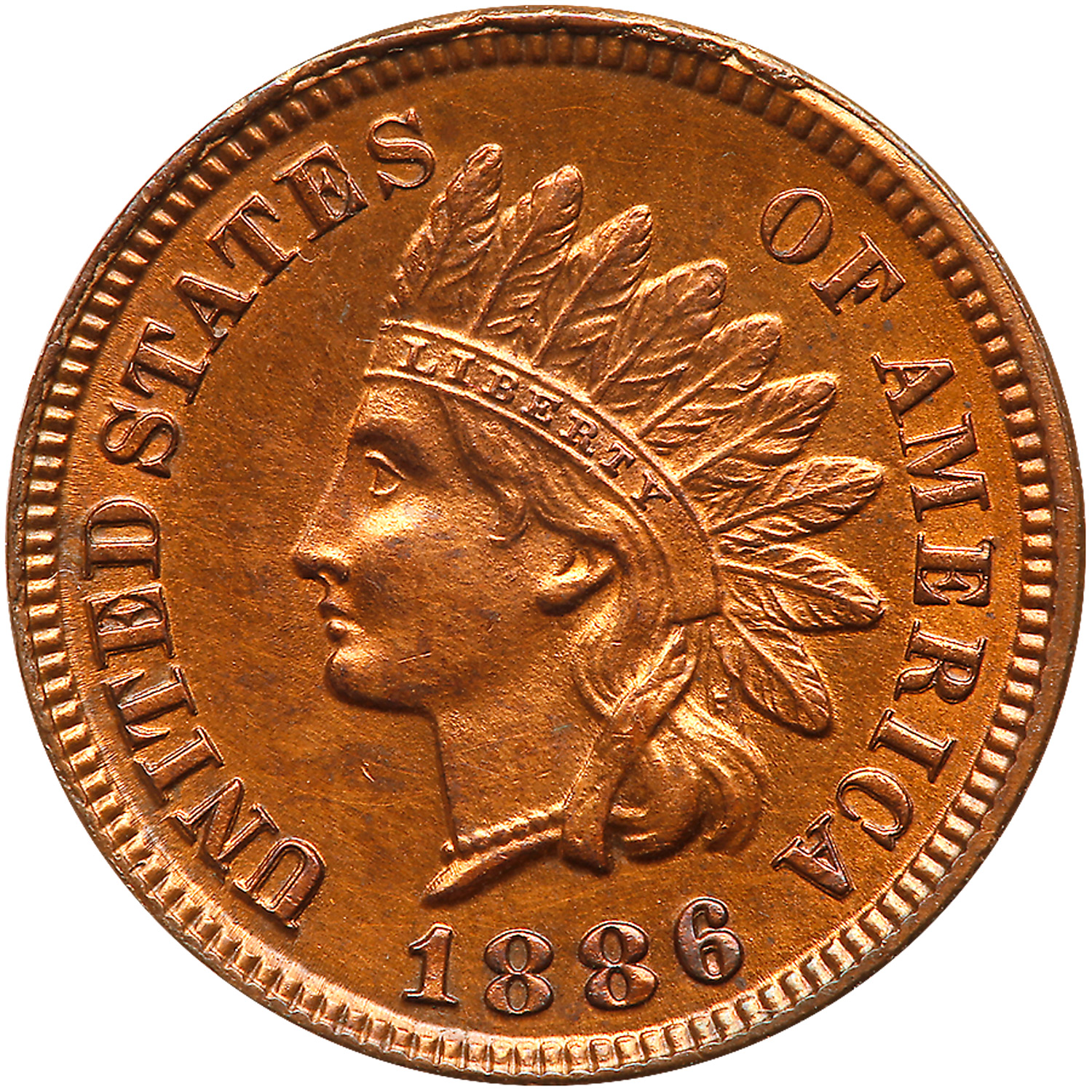1886. Variety 1. Snow-1. Sharpness of AU-50, Cleaned. Repunched date. Estimated Value $150 - 175