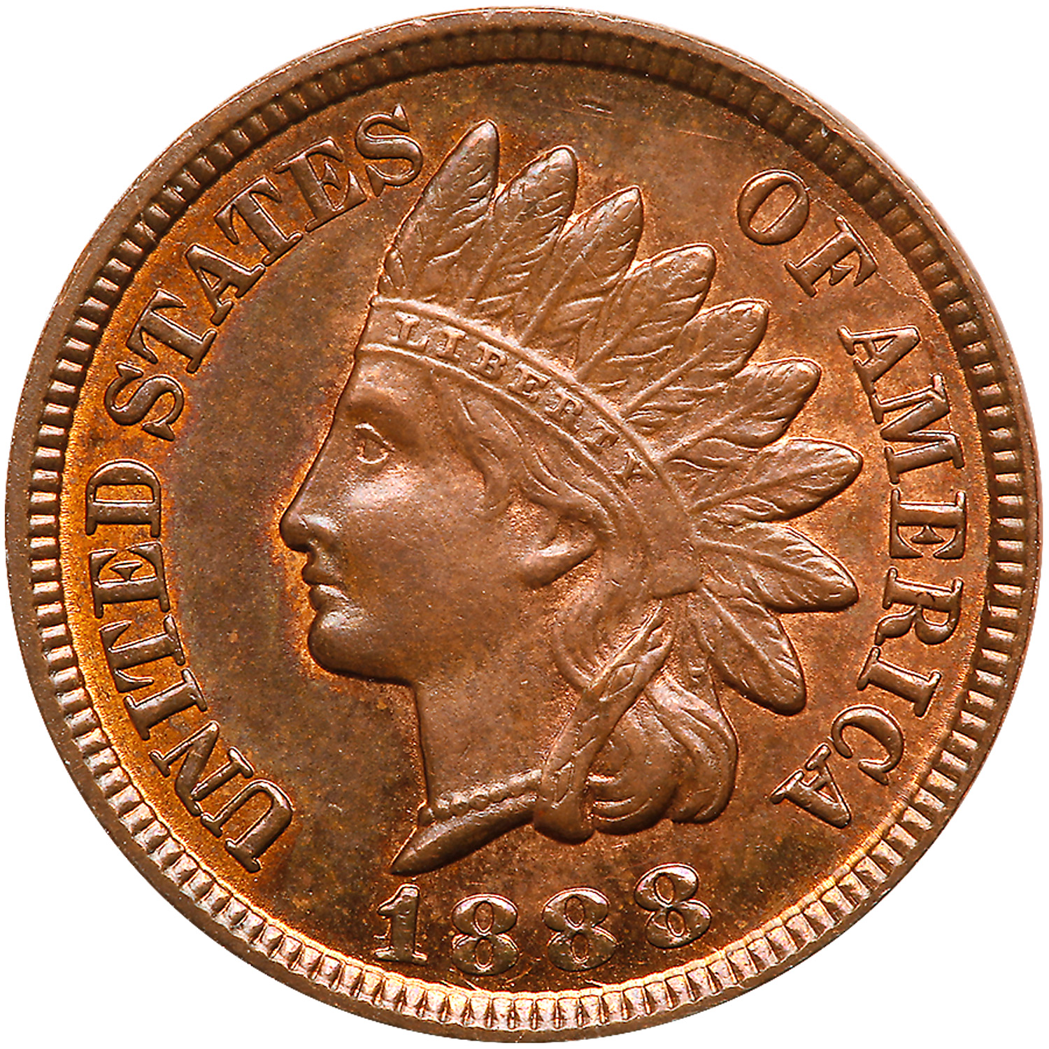 1888. Snow-4. AU-55. Bold repunching on the 18. About 30% red. Estimated Value $150 - 175
