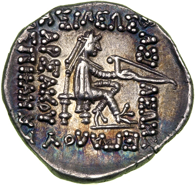 Parthian Kingdom. Mithradates II, 123-88 BC. AR Drachm (4.21 g). Draped and diademed bust left. Reverse: Archer right, within square formed by inscription. Sell. 27.1. Bold portrait on choice metal. Lovely toning. Extremely Fine. Estimated Value $150 - 175