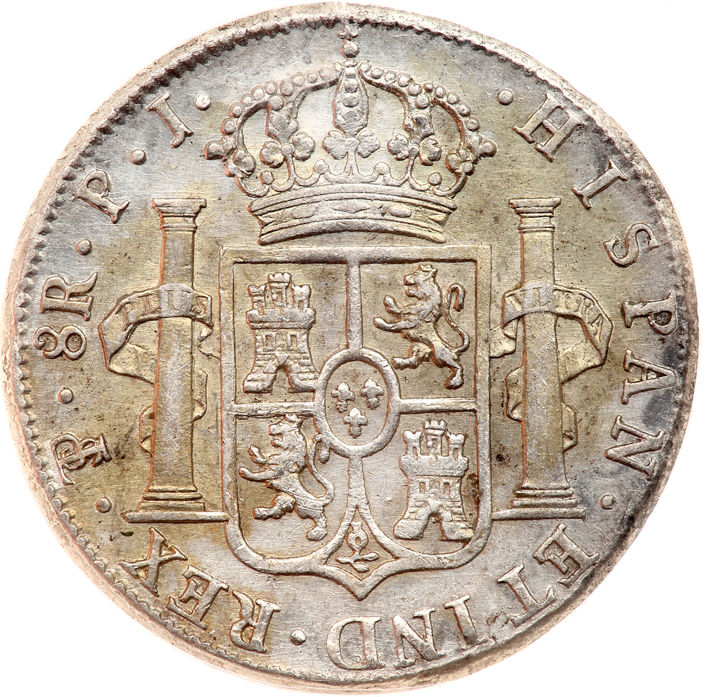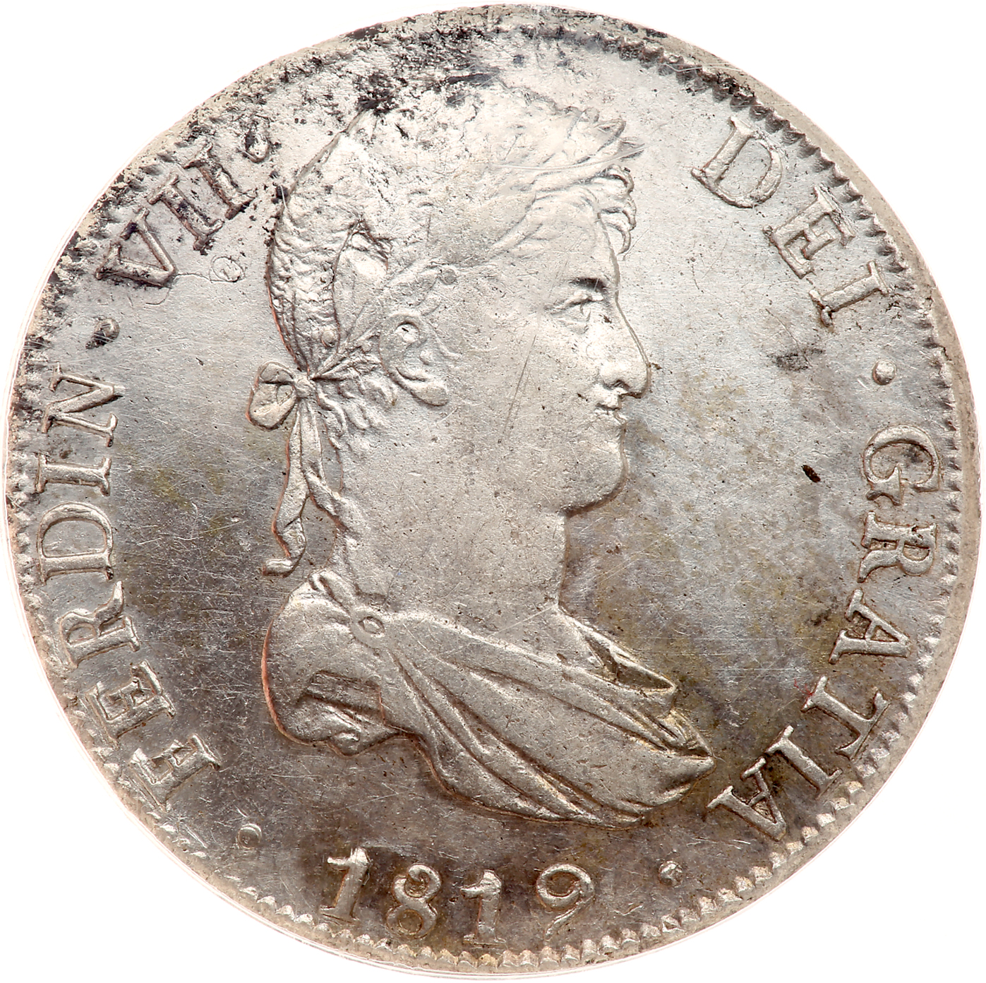 Bolivia. 8 Reales, 1819-PJ. KM-84. Ferdinand VII. NCS graded About Uncirculated, Details (Excessive Surface Hairlines).