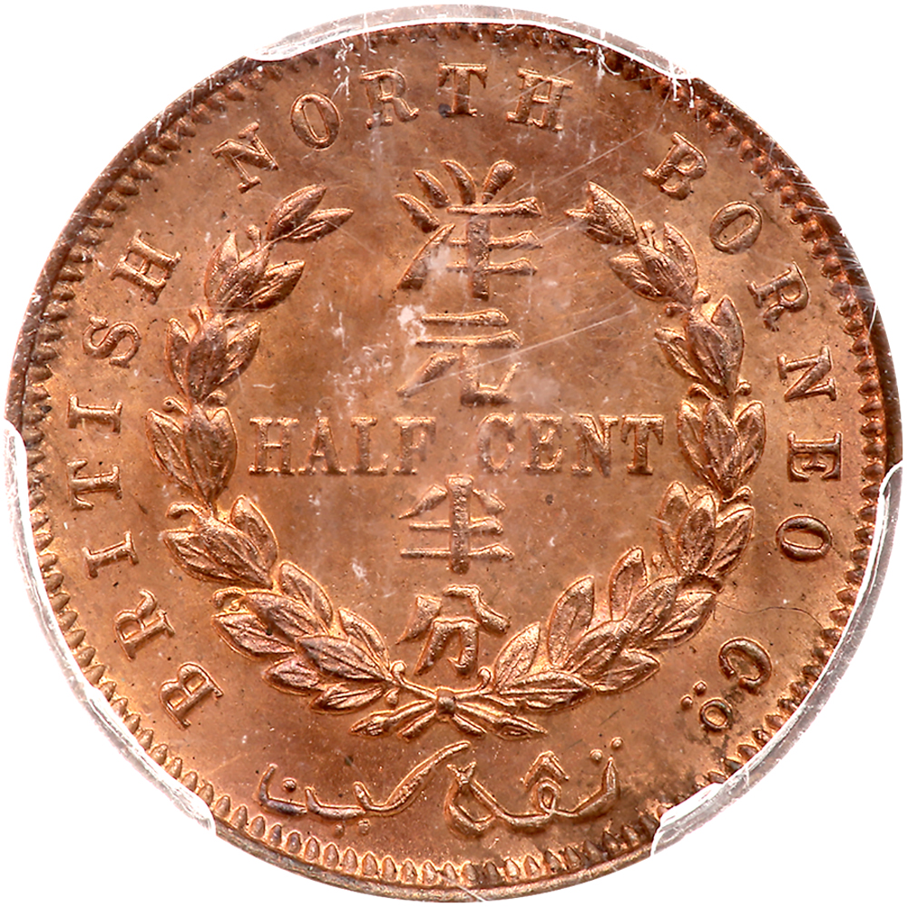 British North Borneo. ½ Cent, 1891-H. KM-1; Prid-32. PCGS graded MS-64 Red & Brown.