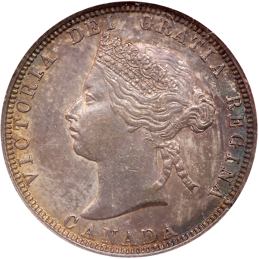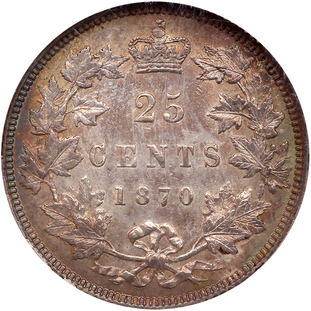 Canada. 25 Cents, 1870. KM-5. Victoria. Mult color toning. NGC graded MS-62.
