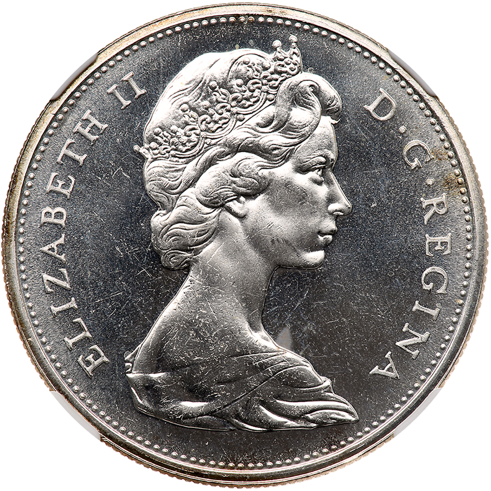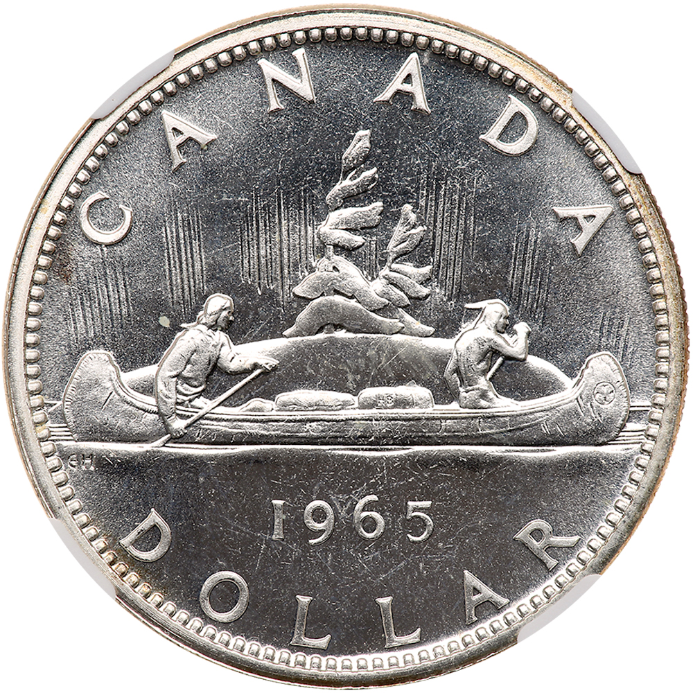 Canada. Dollar, 1965. KM-64.1. Small beads, pointed 5. NGC graded PL 65.