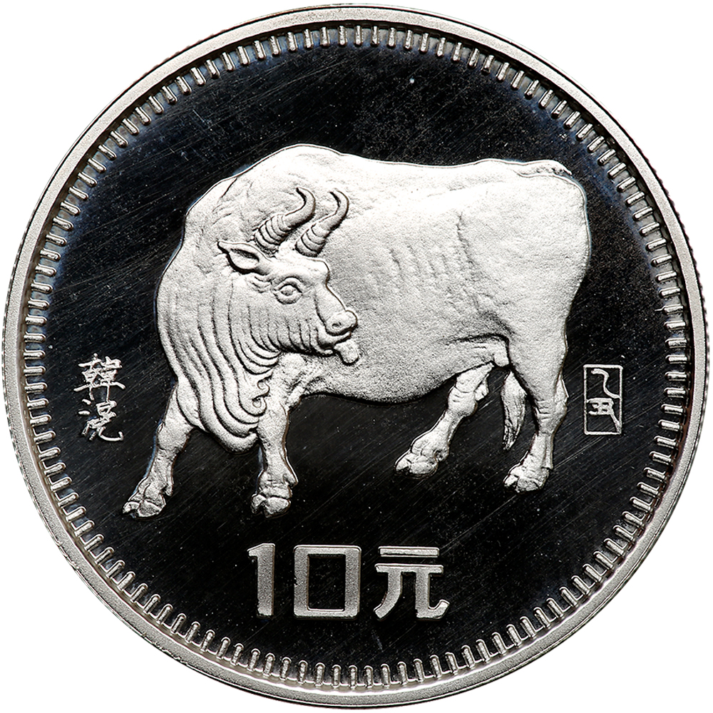 China. 10 Yuan, 1985. KM-119. Lunar series. Year of the Ox. Gem Brilliant Proof.