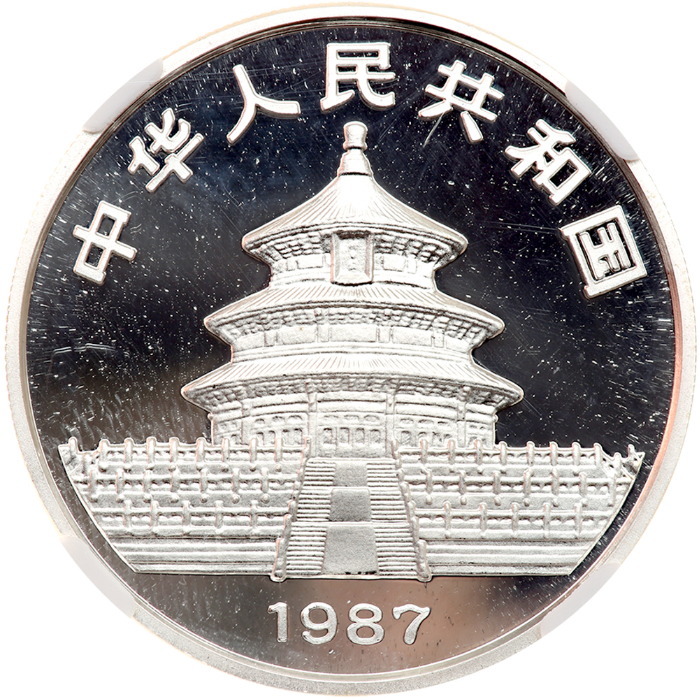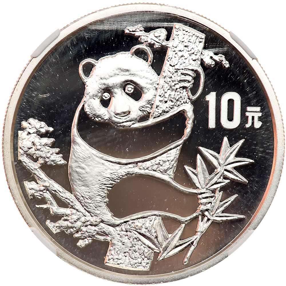 China. 10 Yuan, 1987. KM-167. Silver. Panda climbing tree. NGC graded Proof 69 Ultra Cameo.