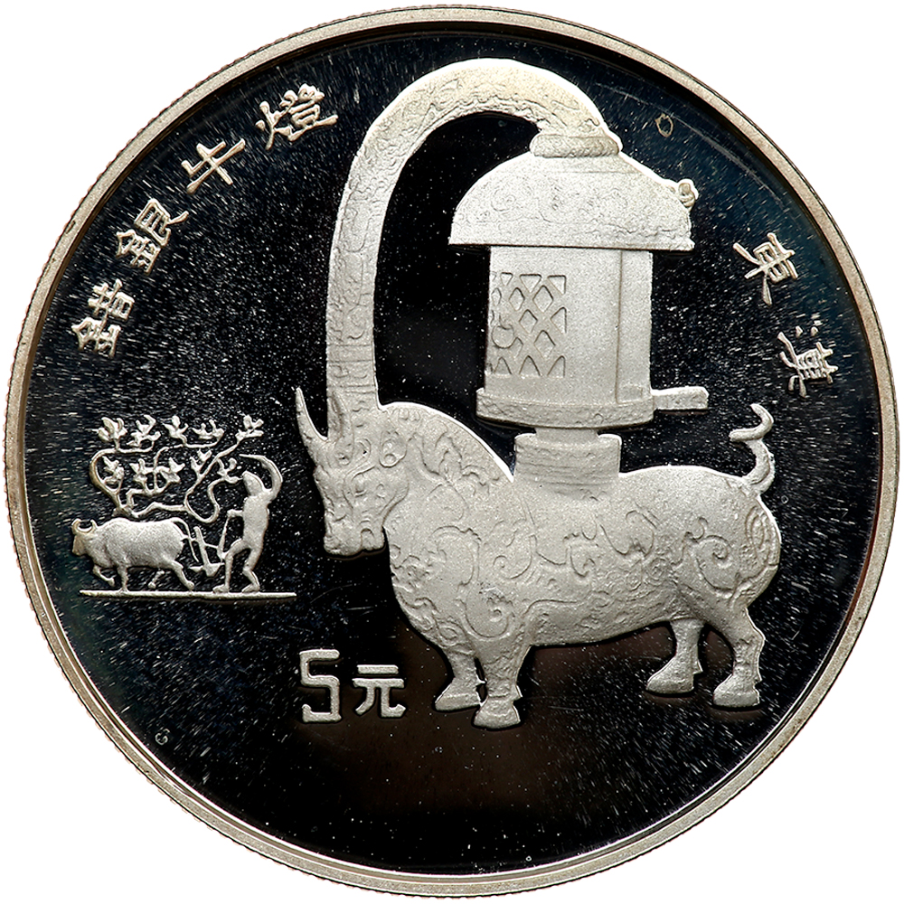 China. 5 Yuan, 1993. KM-567. Archeological Finds. Ox lantern. Gem Brilliant Proof.