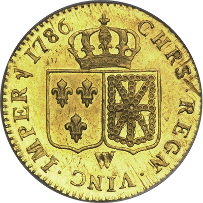 FRANCE. 1 Louis d' or, 1786-W (Lille). Fr-475; Cr-83.7. Louis XVI. Prooflike fields and glowing 18th-century luster. Lovely old-time yellow gold toning. Choice Uncirculated.