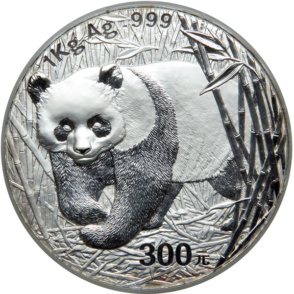 China. Silver Kilo 300 Yuan, 2002. KM-Unlisted. Weight 32.117 ounces. Mintage of 4,000 pieces. Panda walking left. Choice Brilliant Proof.