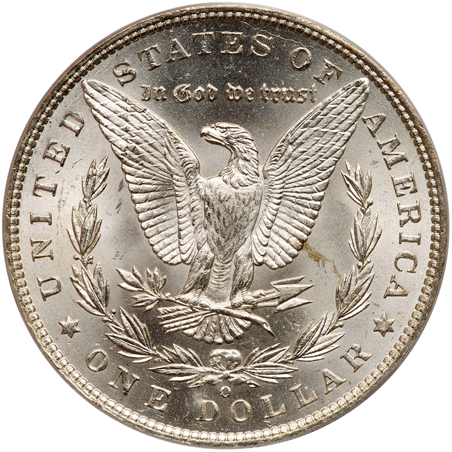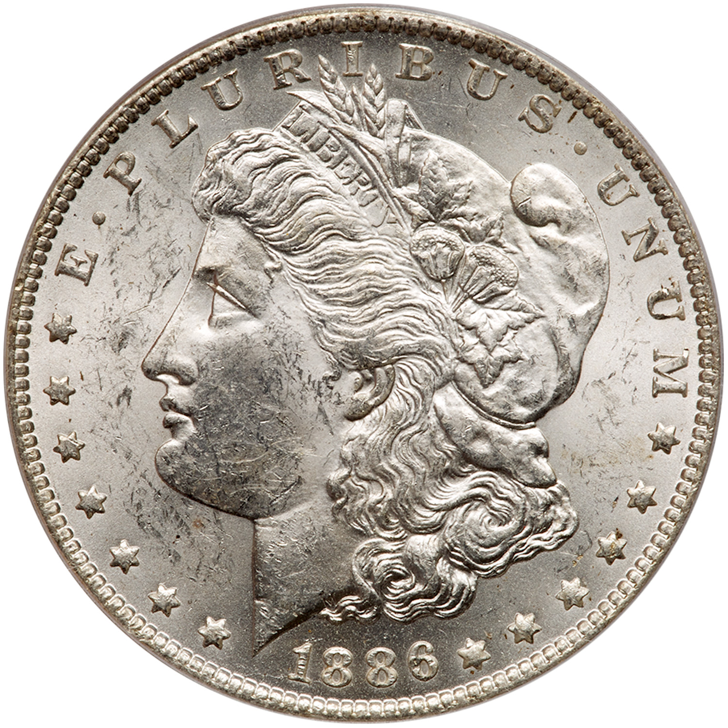 1886-O. PCGS graded MS-61. CAC. A well struck frosty white example. This is one of the really tough dates and mints to find in any grade of mint state, and this one should suit most collectors and won't completely break the budget compared to a few points finer for this issue. A sweet mint state coin for the collector (PCGS # 7168) Estimated Value $850 - 900