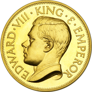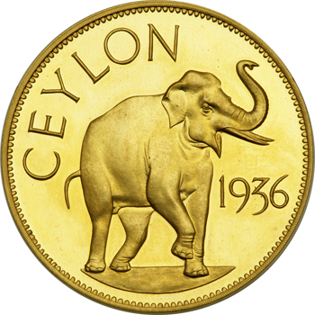 Ceylon. Crown Struck in Gold, 1936. Bruce X#1C. 37.40 grams. By Geoffrey Hearn. Edward VIII. Bust left. Reverse: Elephant. Brilliant Uncirculated.