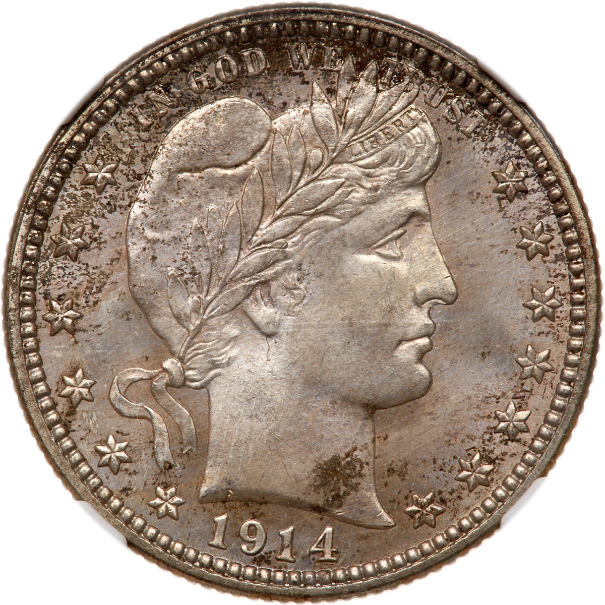 1914. NGC graded MS-67. A super gem example with pale violet and russet toning, deeper at the rims, lighter to the centers. Well struck and attractive in every way. Pop 2; tied for the finest examples graded at NGC. Estimate Value $4,000 - 4,500