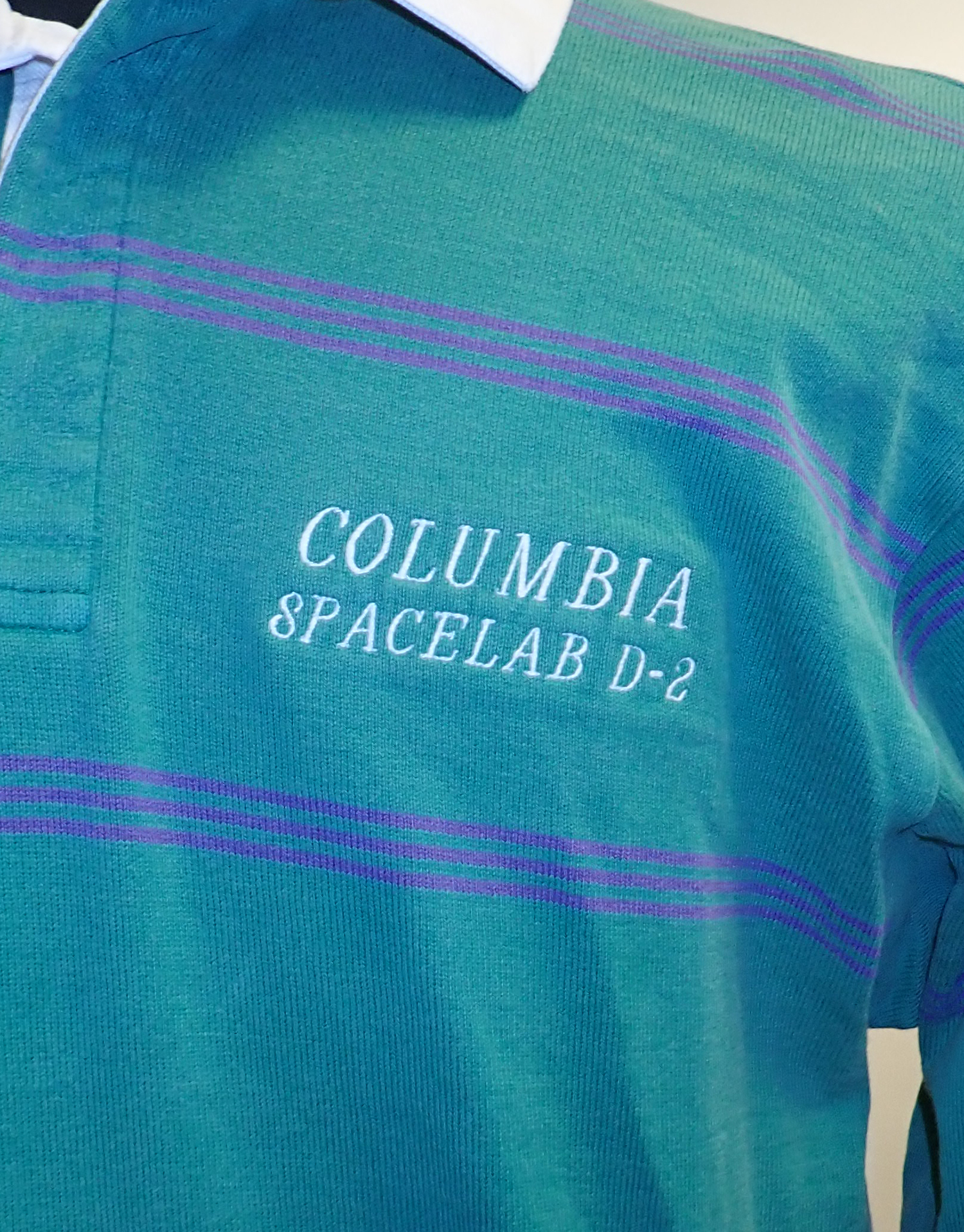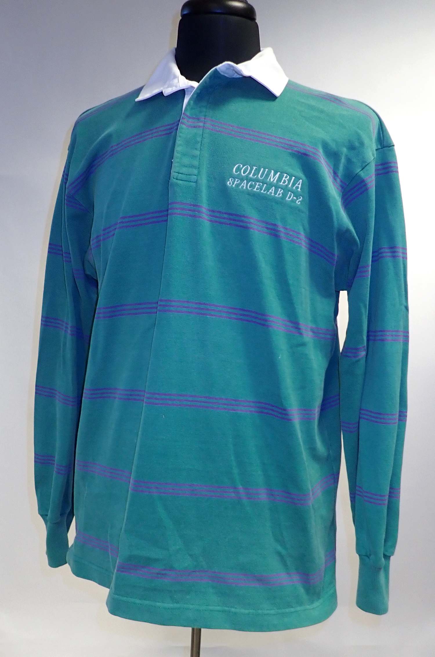 Very Rare Flown Land's End Rugby Shirt on STS-55 by NASA Astronaut and Author Who Flew 7 Missions. Highly prized flown Land's End rugby shirt embroidered with Columbia Spacelab D-2 from STS-55, Shuttle Columbia. Chris Hadfield, author of "An Astronauts Guide to Life on Earth" is quoted as saying this multi-mission specialist is "the embodiment of the trustworthy, loyal, courteous and brave astronaut archetype." Fine words indeed of this celebrated astronaut. Shirt is obviously pre-owned and in excellent condition. LOA included. If image hasn't loaded, contact office directly and we will be pleased to send. Estimate Value $800 - UP
