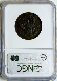 1791 Washington Small Eagle Cent Breen-1217. NGC graded AU-55 Brown. Choice glossy chocolate brown with traces of frosty light brown toning in protected areas, especially on the obverse. Smooth, mark-free surfaces. Just a touch of friction on the highpoints from mint state. A choice example.