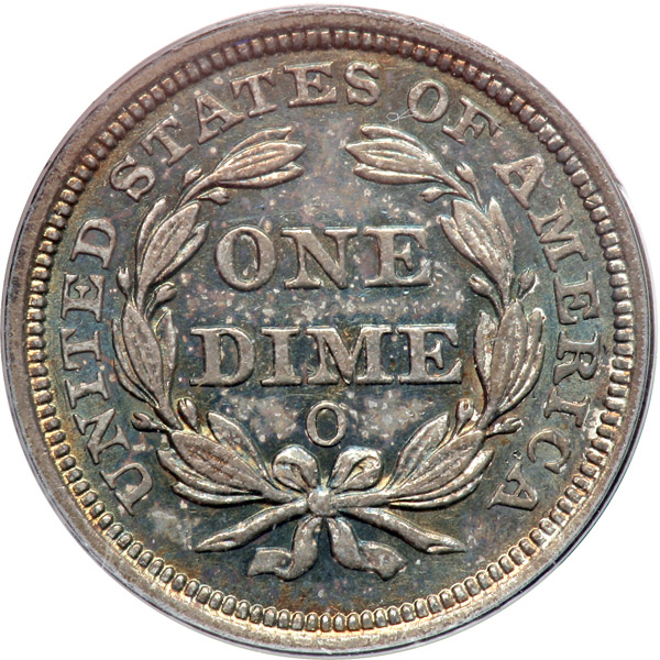 1858-O. PCGS graded AU-58. Attractive antique toning. Pop 6; 15 finer (PCGS # 4617) .