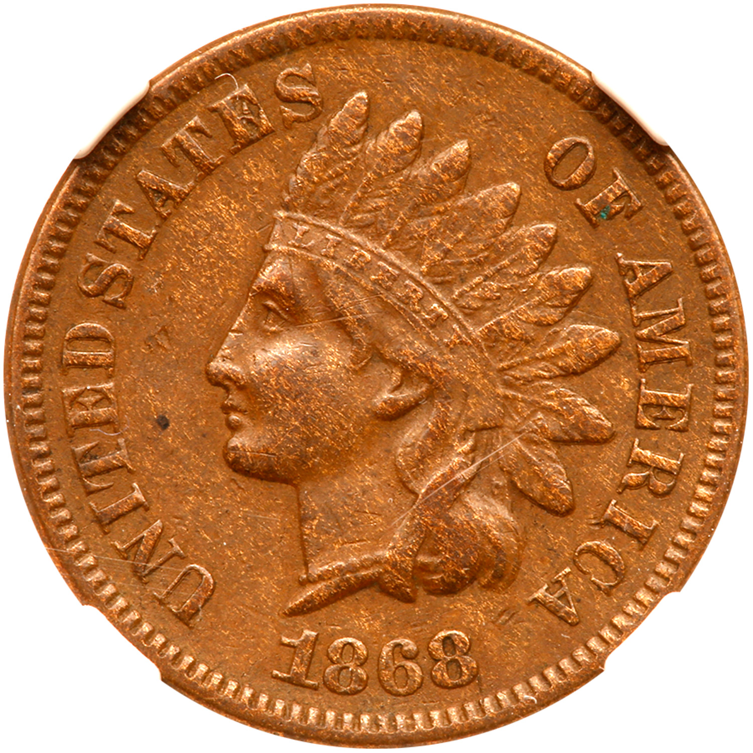 1868. Snow-12. NGC graded EF-40 Brown. A bold misplaced digit variety. Our grade is Choice VF. Estimated Value $80 - 100