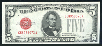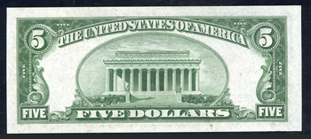 1928-D, $5 Legal Tender Note. . Fr-1529. . KL-1643. PCGS Gem New 66PPQ. Fully Gem with broad margins.